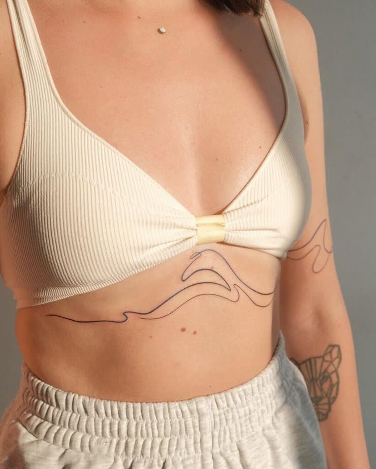 Wave imagery is dreamy and a little spiritual; on the sternum it feels private but powerful. Waves can stand for the subconscious, the sea, or cycles in your life — and they look gorgeous when rendered abstractly.