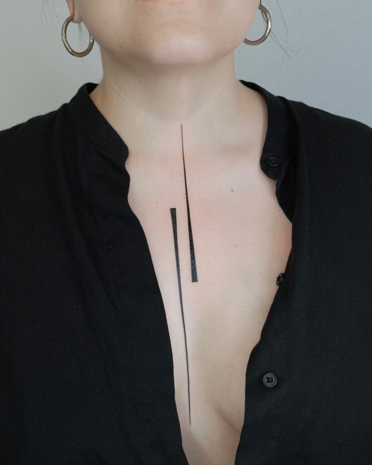 Sometimes less really is more. Two parallel lines down the sternum or chest read like a private code — very simple, but they make people curious in the best way. A perfect example of how restraint can feel intentional.