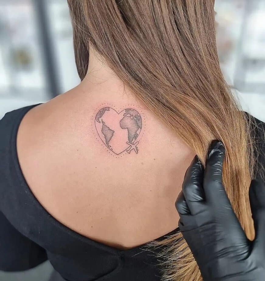 Simple outline, little heart tucked in — this one says “I love to travel” without screaming it from the rooftops. It’s sweet, unassuming, and perfect when you want your ink to do the talking for you.