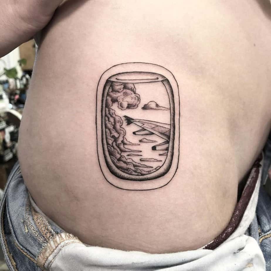 There’s something about seeing the world from a little oval window that sticks with you. This black-and-gray design captures that exact feeling — the quiet awe of cloud seas and coastlines. It’s the kind of tattoo that makes me pause and remember a specific sunrise over some city I’d only just discovered.