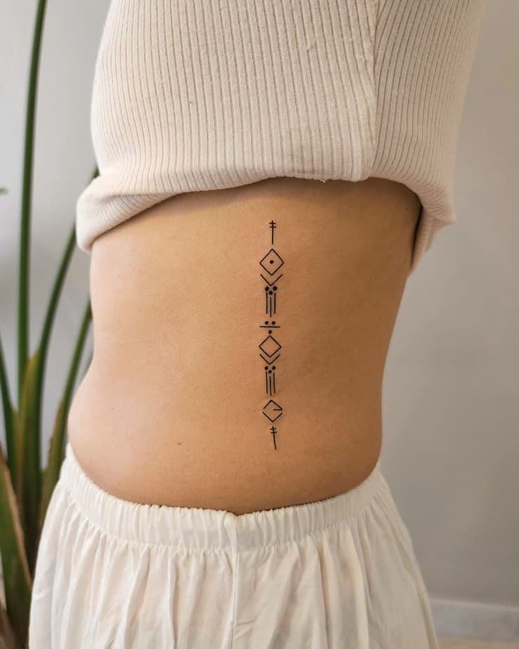 This rib-side piece uses bold strokes to make a statement. It reads like resilience and determination translated into visual form. If you want your tattoo to carry weight — literally and figuratively — this is the way to go.