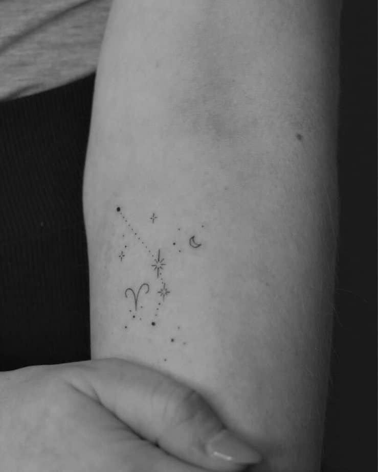 Fine-line tattoos are thinner and more intricate, and they give that understated, elegant vibe. If you want something refined that still has personality, a fine-line Aries constellation on the forearm is a lovely choice.