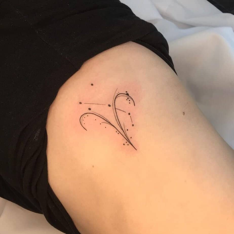 Want to anchor your tattoo in a memory? Pair the Aries constellation with Roman numerals for a birthdate or a special year. It feels a little vintage and a little mysterious — like your body is holding a tiny secret that only you choose to reveal.