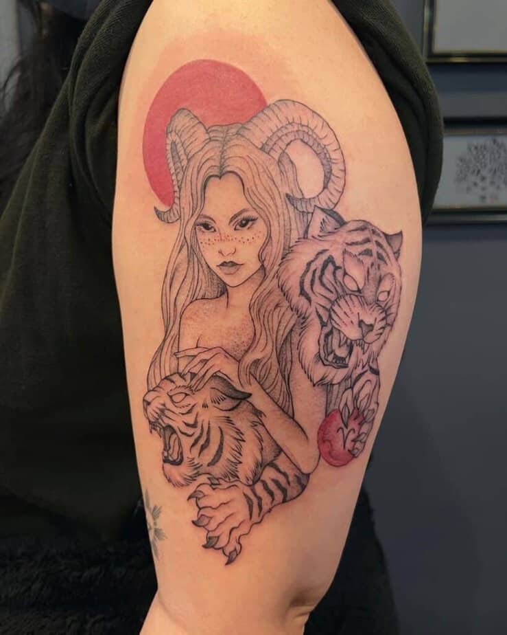 I get it — sometimes we overthink tattoos because we want everyone to know we’re “art people.” But a simple Aries piece on your bicep is classy and easy to love. It’s low-commitment visually but totally tells people who you are.