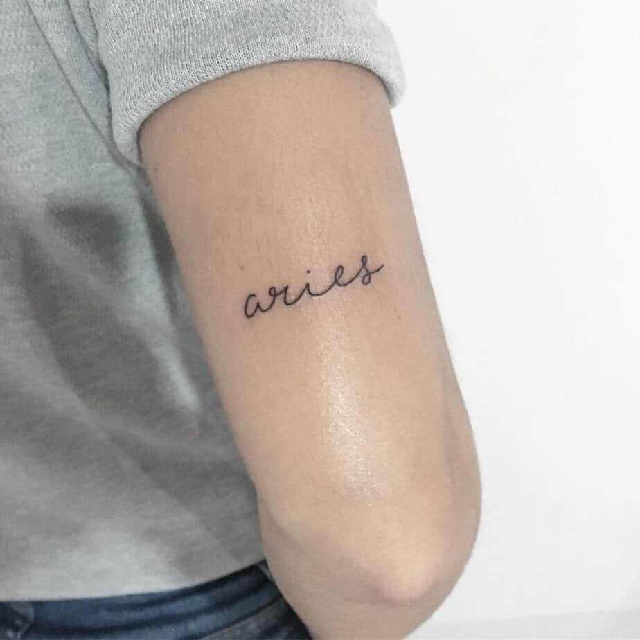 Sometimes simple is the best flex. A clean “Aries” scripted on the back of your arm is straightforward and confident — makes the statement that yes, you’re the first fire sign and yes, you mean it.