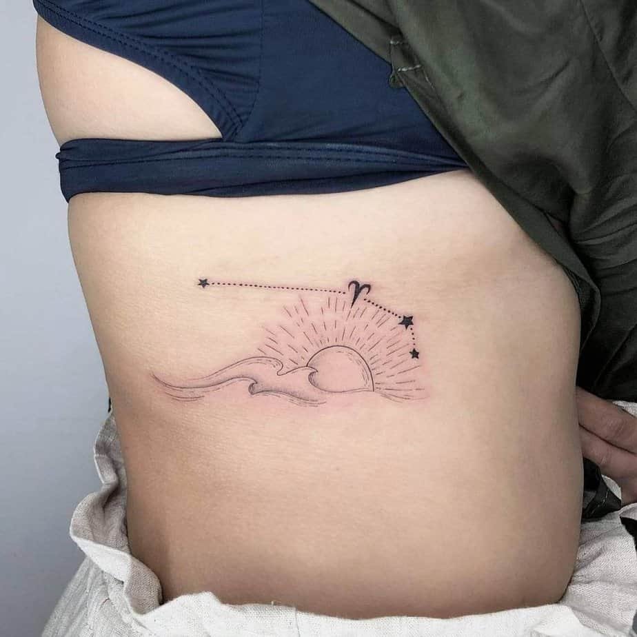 If you love symbolism, mix it up. Imagine your Aries constellation woven into the sun and a wave on your ribcage — all your favorites combined. Work with an artist to incorporate elements that tell your story: ocean, sun, moon, tiny stars, whatever lights you up.