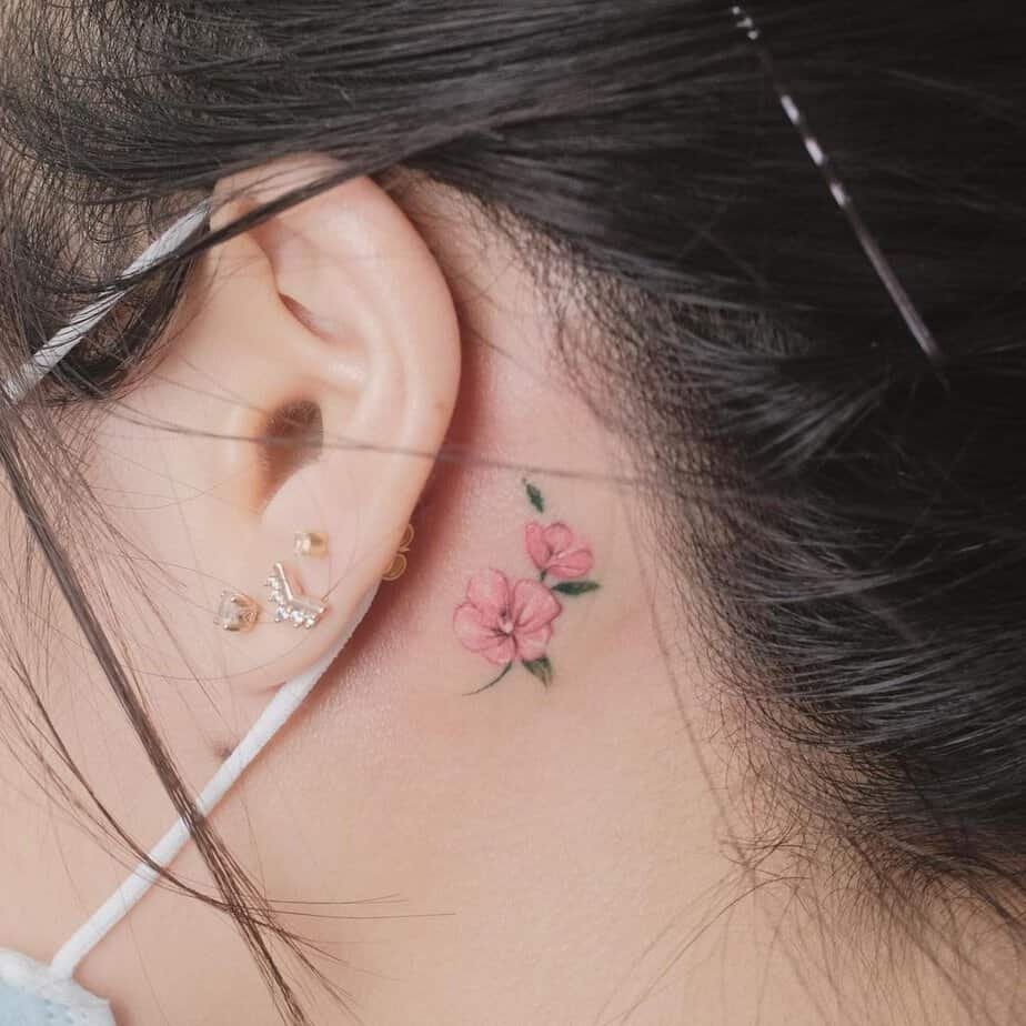 Small pink flowers behind the ear are basically wearable joy. They’re delicate, cheerful, and remind you that tiny things can pack a lot of sweetness — perfect if you want something subtle but endlessly pleasant.