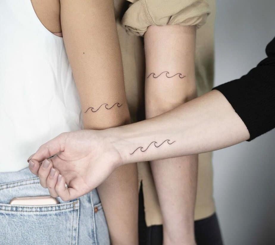 Wave tattoos are elegant and calm — a nod to the ocean or to that shared attitude of rolling with whatever life throws at you. Simple, meaningful, and lovely when matched.