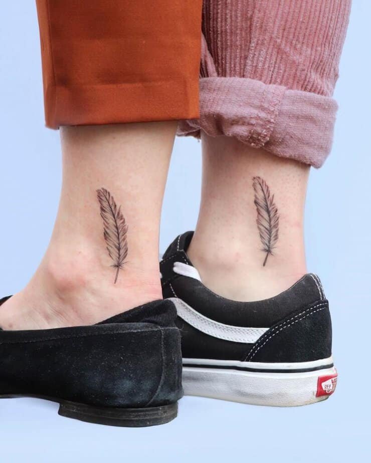 Foot tattoos feel intimate and kind of like a shared secret. Whether it’s a typewriter font word, a tiny phrase, or a script that means something only the two of you really get, it’s such a cozy spot for matching ink.