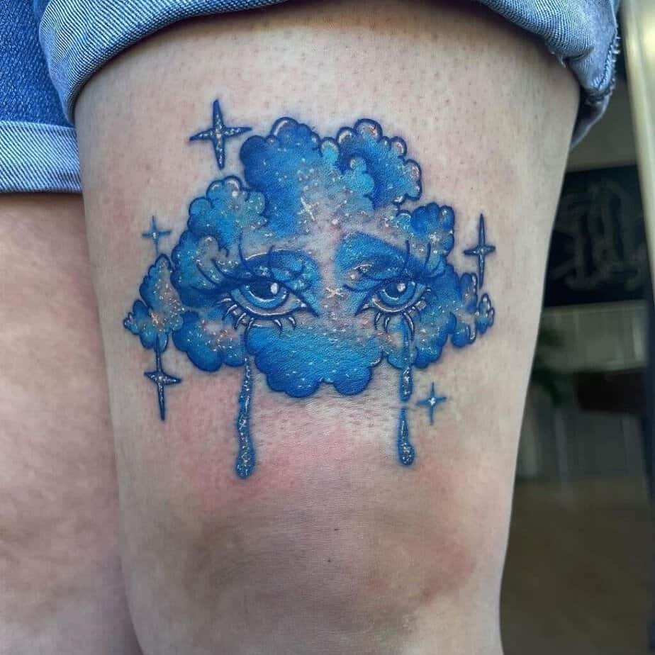 For anyone who loves color-forward ink, a bold blue cloud looks modern and alive. It’s unapologetically vibrant — a great pick if you want your tattoo to sing.