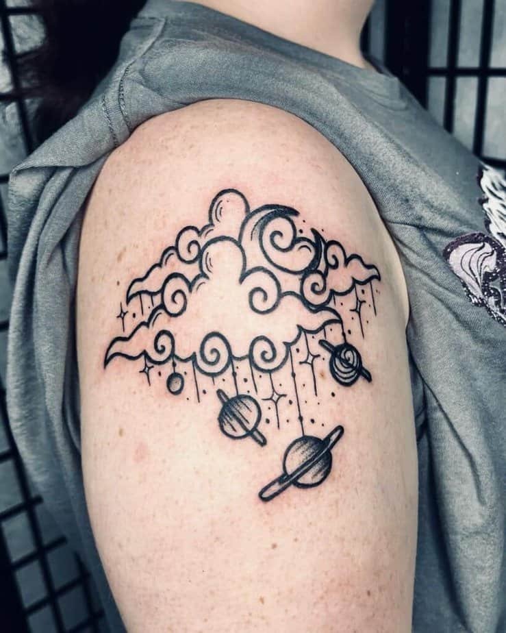If traditional clouds feel a little too on-the-nose, go abstract. This design keeps the meaning — movement, softness, change — but presents it in a way that feels a bit mysterious and artful. It’s perfect if you like tattoos people have to look at twice.