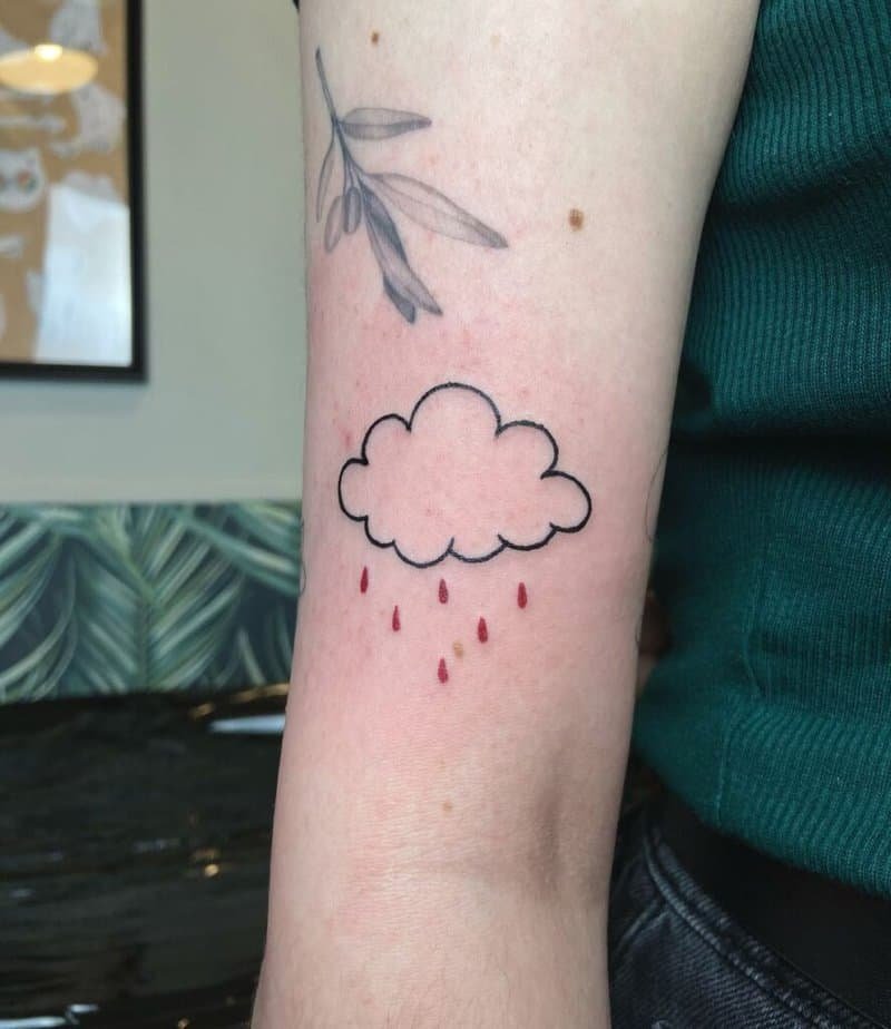 Minimal tattoos are forever chic, but sometimes you want a splash of color to give the design personality. This shows how a little hue can turn a simple cloud into something joyful without being loud. Subtle and fun.