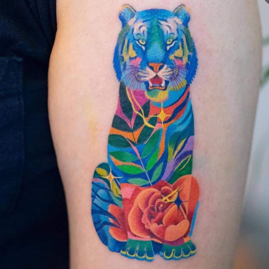 Colorful and intricate, this tiger tattoo balances speed, power, and raw beauty. It’s for anyone who wants a strong, symbolic image that still reads like art — bold, confident, and a little wild.