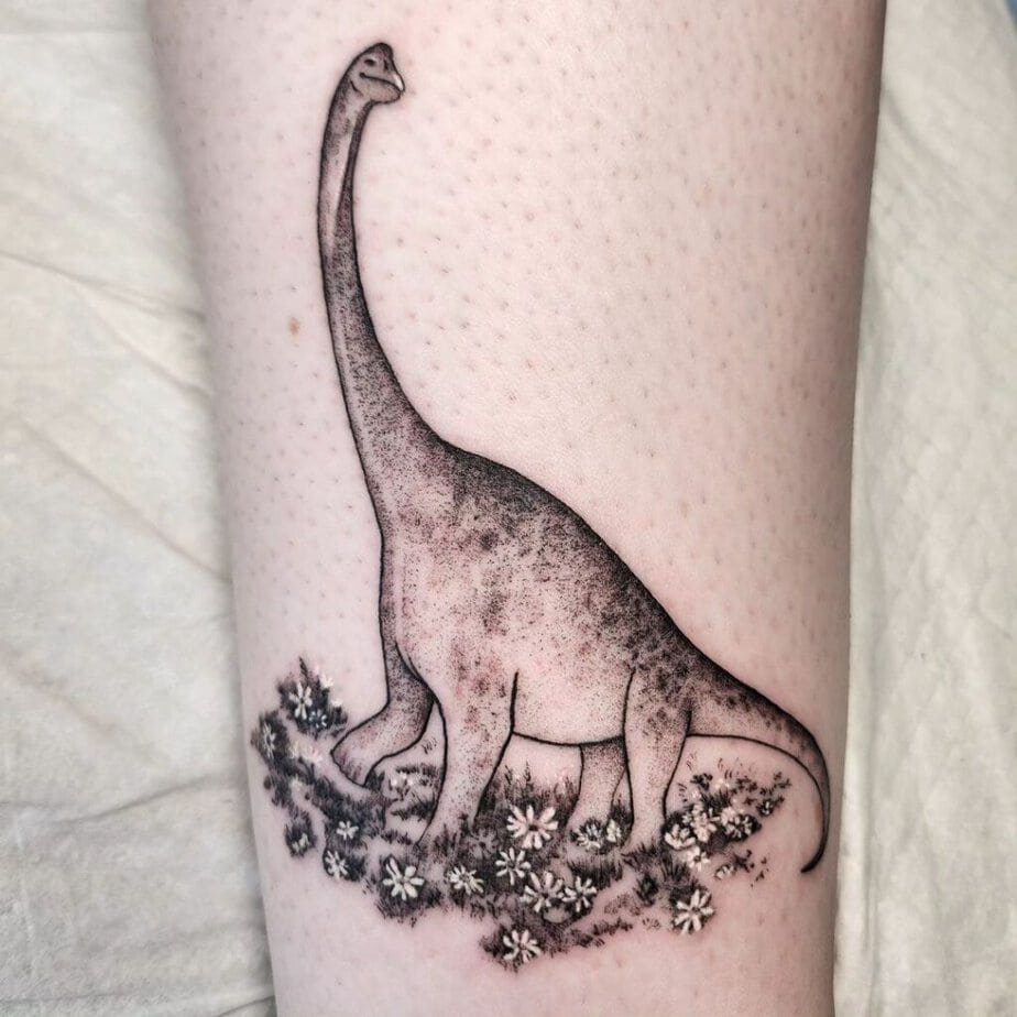 Flowers and fossils — floral dinosaur tattoos