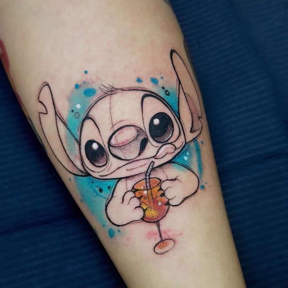 This is the kind of little scene that makes me smile: Stitch, all curious and chaotic, sipping an Aperol Spritz like it’s no big deal. It’s goofy, relaxing, and honestly kind of aspirational — sometimes you just need to chill and savor the day, even if you’re a mischievous blue alien.