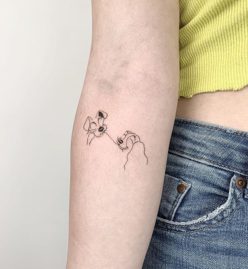 You know the scene: two noses touch over a shared noodle and your heart melts. This fine-line tattoo captures that sweet little kiss perfectly. It’s romantic without being over-the-top — the kind of love story you want inked as a tiny promise.