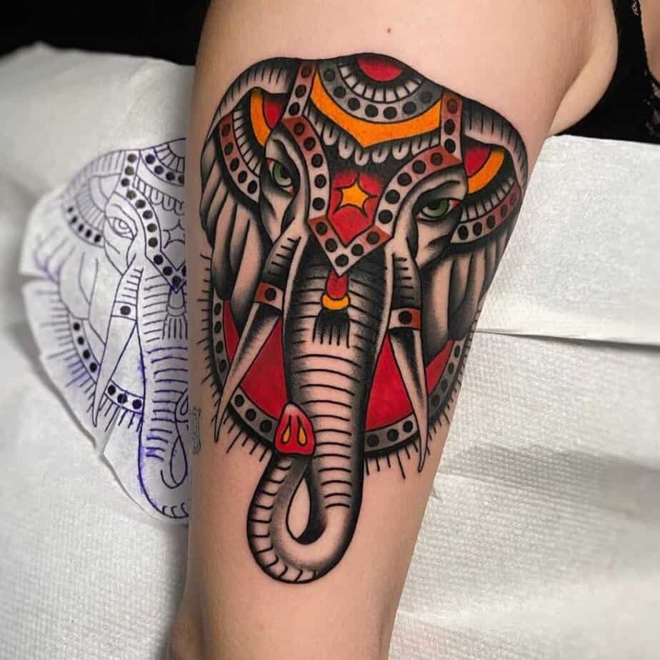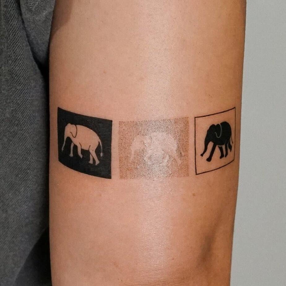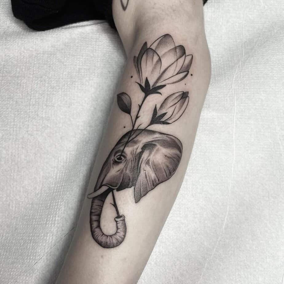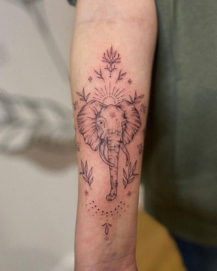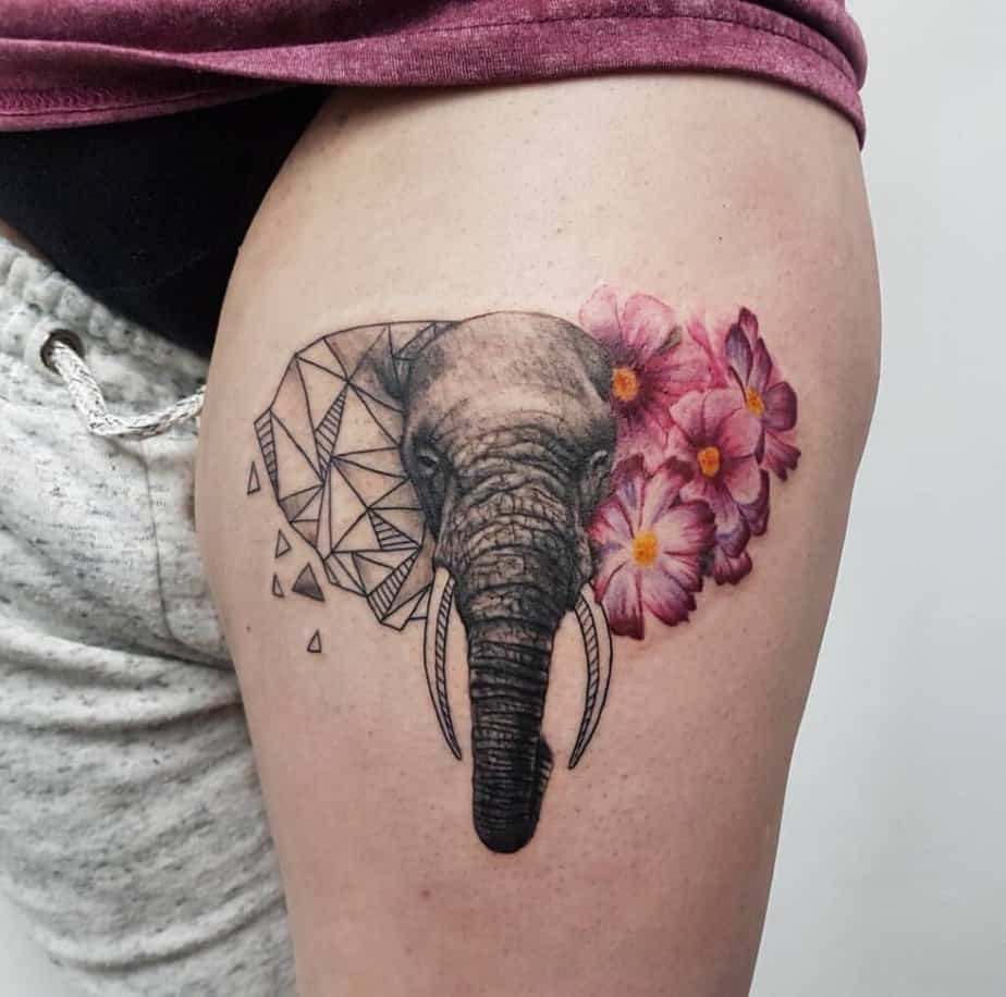 I love when tattoos mix contrasting elements. The geometry here gives structure while the elephant brings warmth — it’s modern and balanced in a clever way.