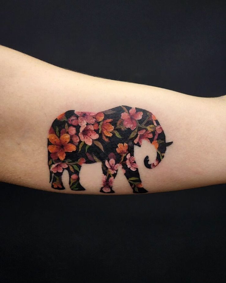 Filling an elephant silhouette with floral shades turns the whole piece into a tiny landscape. It’s creative and feels like a secret garden inside an outline.