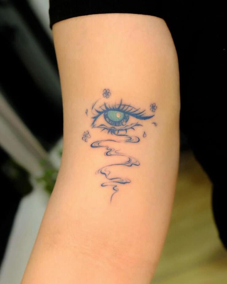 Color is an easy way to personalize an eye tattoo. A blue eye can be a nod to someone special, a memory, or just a color you love — bright and thoughtful.