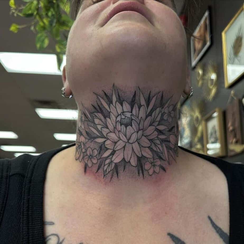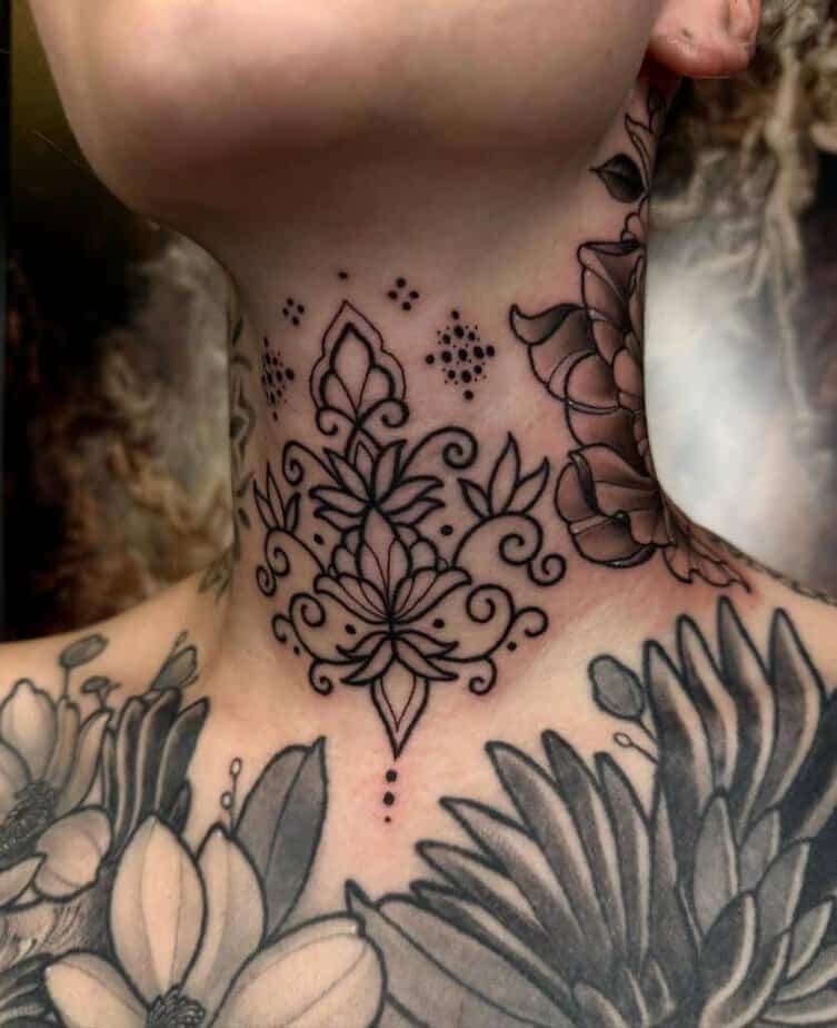Mandalas are timeless for a reason. They’re hypnotic and demand attention, which makes them a natural fit for a front-neck tattoo. If you care about aesthetics and balance, a mandala is a safe bet that still turns heads.
