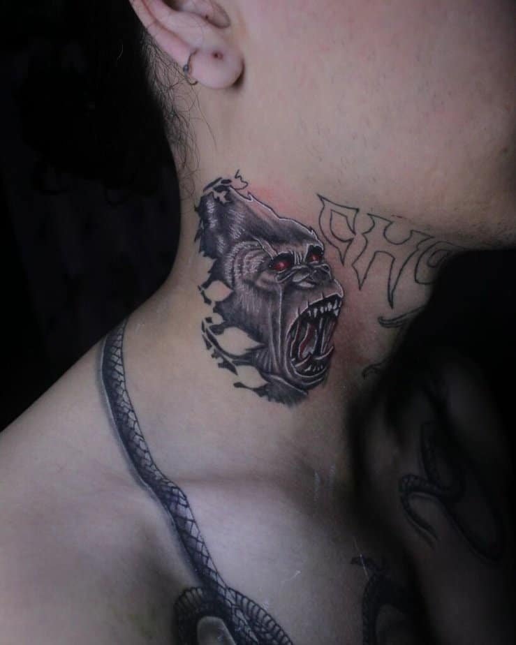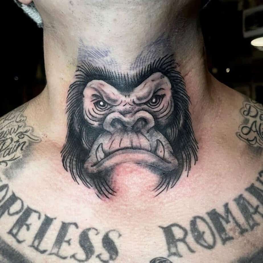 Neck tattoos aren’t for everyone, and if you’re into them, that usually says something about confidence levels. A gorilla on the neck is always on display — loud, proud, and probably the first thing people notice when they meet you.