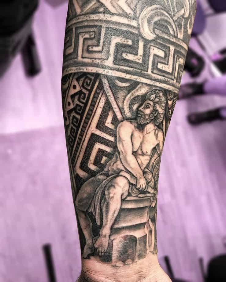 Hephaestus celebrates craftsmanship — fire, forge, and genius hands. This tattoo honors the creative grit behind invention, the kind of energy that turns raw things into art. If you’re a builder, artist, or just someone who loves making, it’s a beautiful emblem.