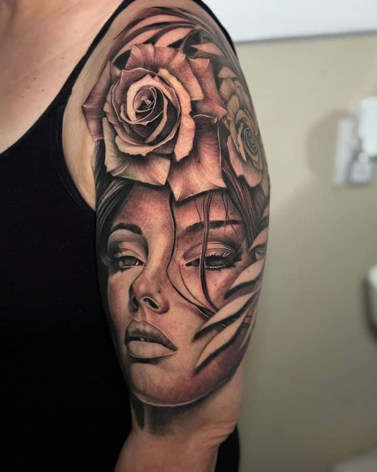 This portrait blends lifelike shading with floral romance. The face feels tender and the roses add passion and beauty — a mix of strength and softness that’s quietly compelling.