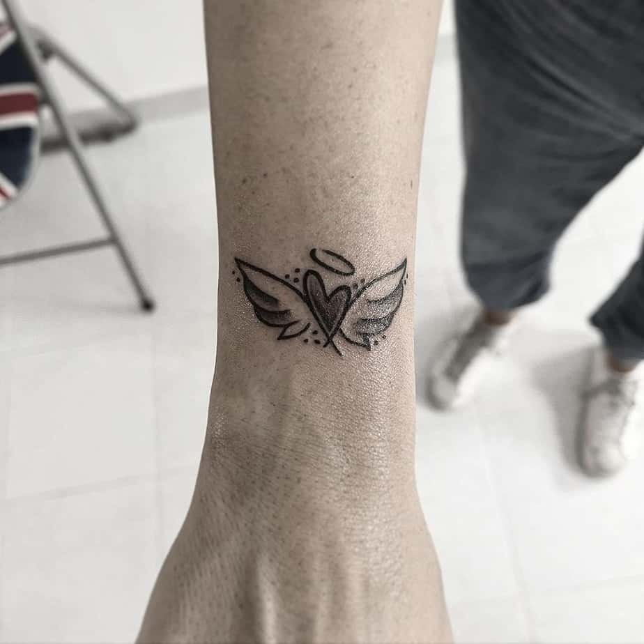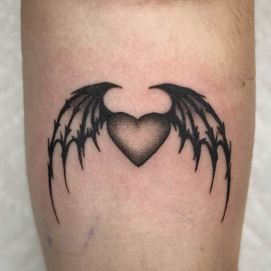This one is for the person who likes their feelings neat and low-key. Thin lines, simple wings, no drama — just a quiet little symbol that says your heart’s got lift. The wings whisper freedom and the heart does the talking; it’s like wearing a private love note that only you (and anyone who notices) will understand.
