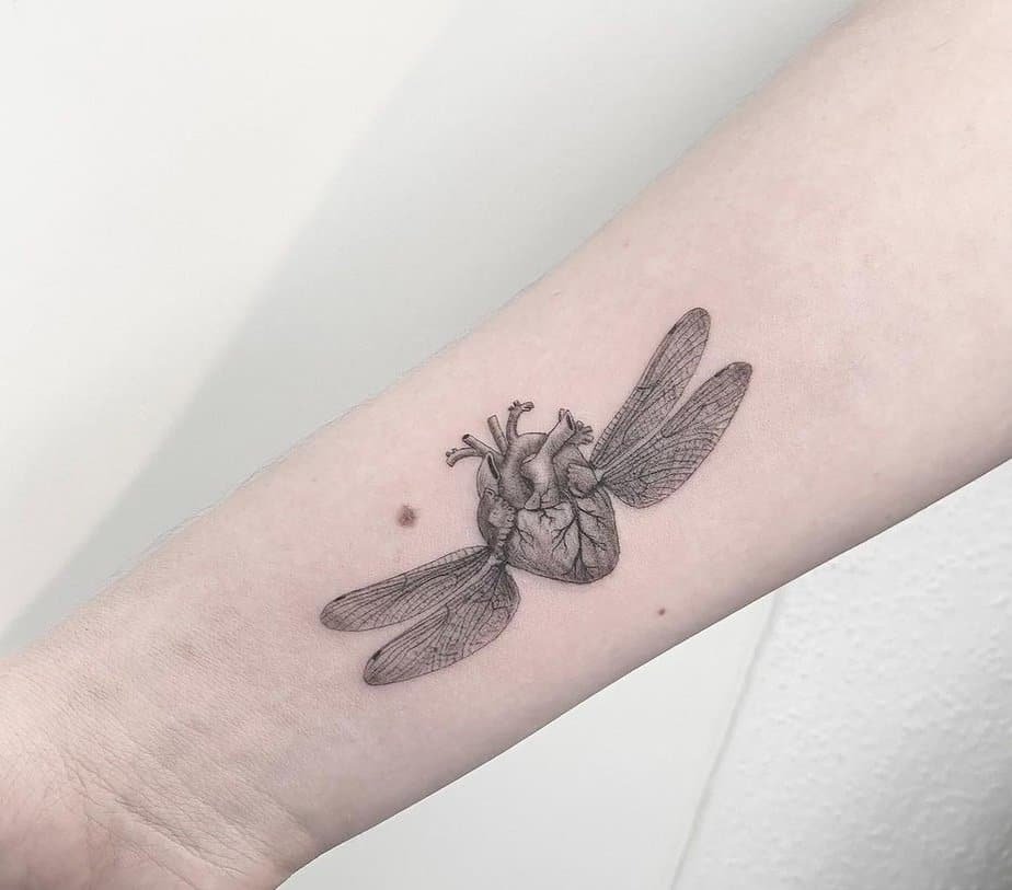 Okay, I love how this twists tradition into something a little rawer and more honest. An anatomical heart is visceral and real; add wings and it becomes a bold statement about feeling deeply but refusing to be pinned down. It reads like: I feel a lot, and I’m still free.