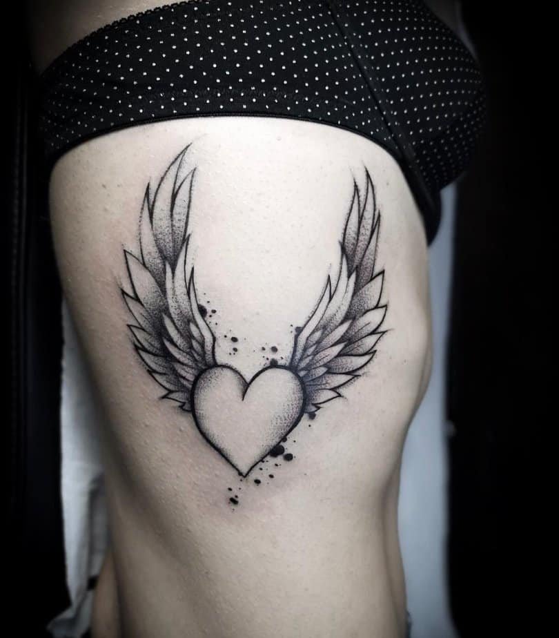 Side-rib tattoos are intimate and dynamic, and this winged heart hugs your curves in the best way. It moves with you, feels personal, and reads like wearable art. If you like tattoos that reveal themselves slowly, this is such a good choice.