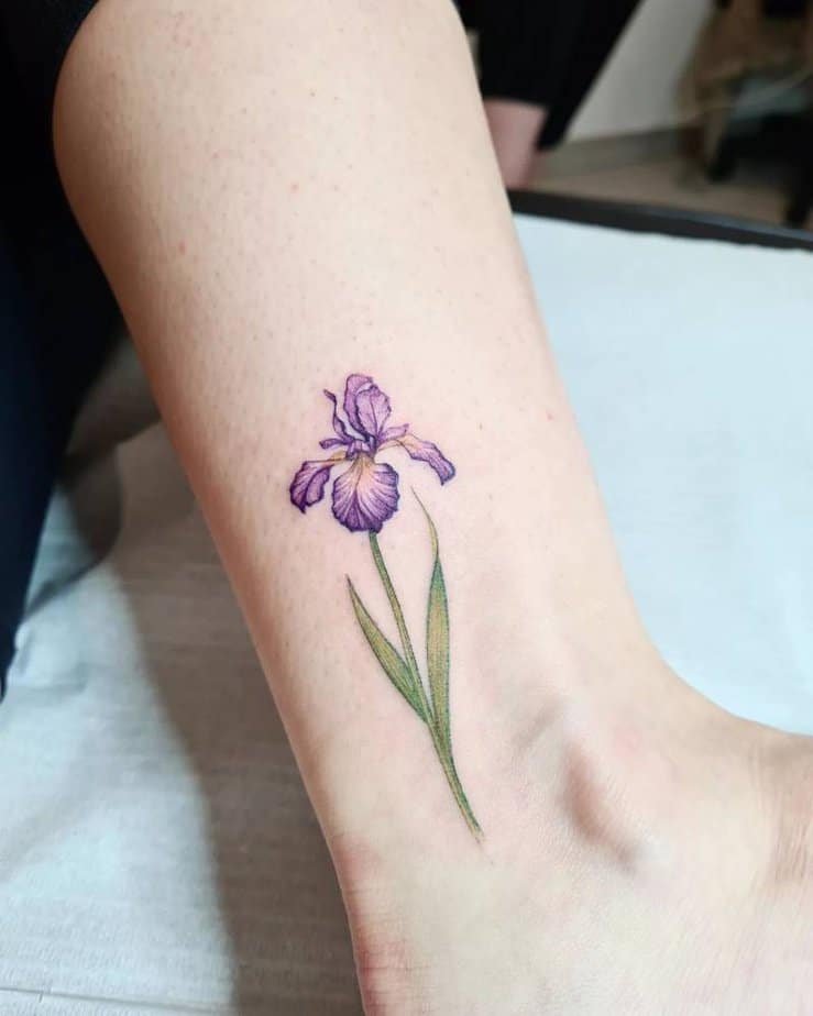 Ankle tattoos have this quietly elegant energy, and a slender-stem iris there is just that: graceful and understated. It adds a little flair to every step, and I love how it’s both subtle and feminine. Easy to hide, lovely to show — win-win.