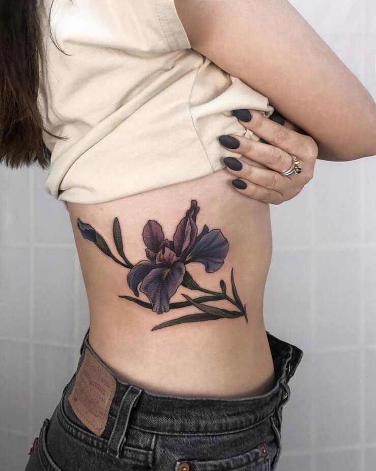 Rib placements feel intimate, and a small iris there is like a secret garden just for you. It’s easy to hide or reveal depending on your mood, and because it’s close to your heart, it always feels personal.
