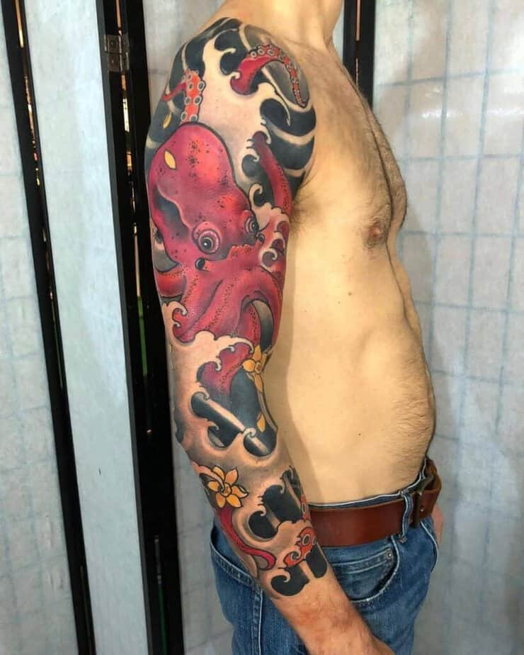 An octopus surrounded by waves and lotuses symbolizes adaptability and intelligence. It can be a big, intricate piece or scaled down to something smaller if that feels more your speed.
