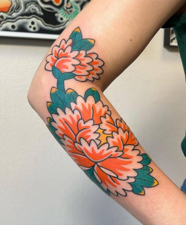 Chrysanthemums symbolize longevity and happiness, and they look gorgeous whether you go full color or keep it monochrome. They’re one of those designs that can be delicate or dramatic depending on placement and shading.