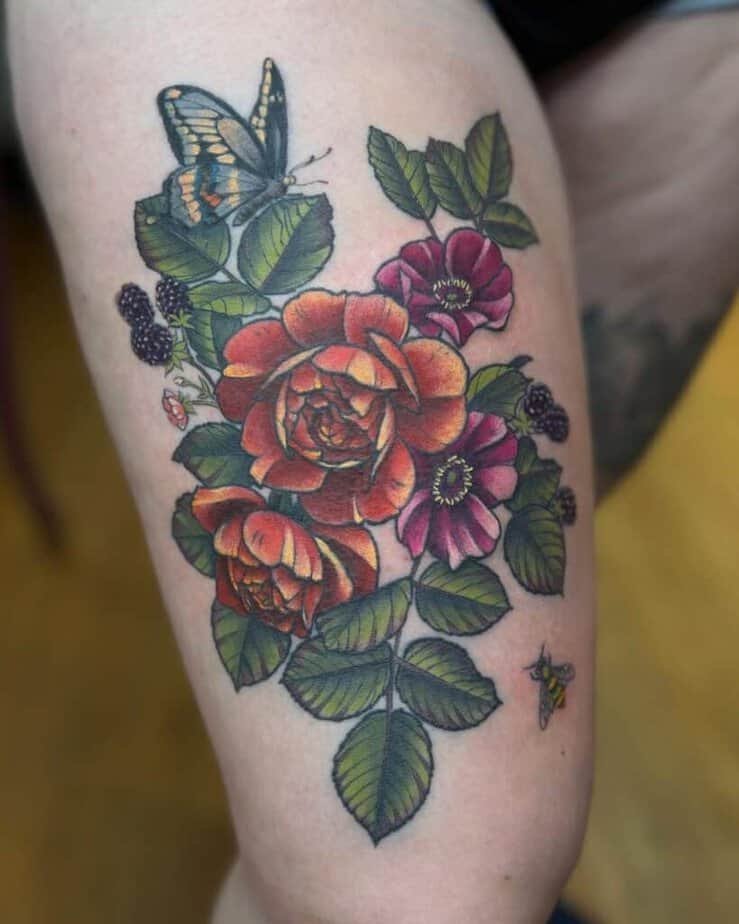 Neo-traditional mixes classic tattoo roots with updated color and line techniques, so flowers look bold but still romantic. It’s a lush option if you want that vintage-meets-modern vibe.