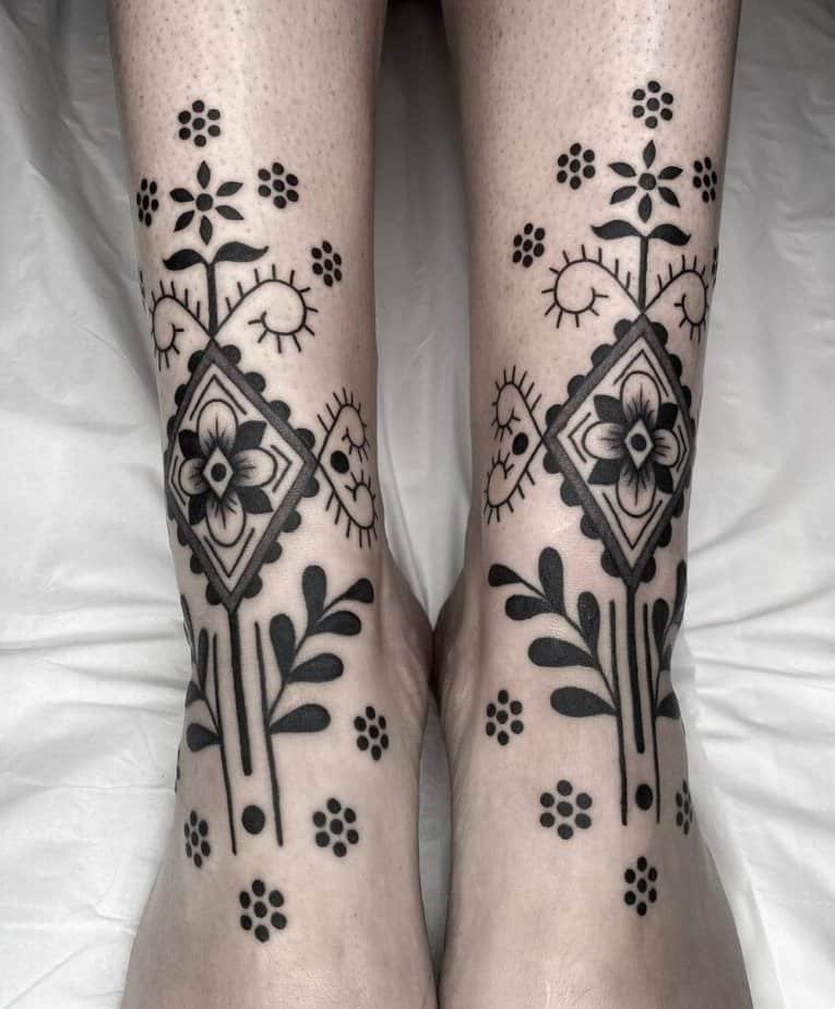 Tribal motifs can be pretty bold, but twisting them into softer swirls makes them feel more feminine. You can keep things minimal or go bold with thicker lines — either way, the curving shapes hug the leg beautifully and look flattering on lots of body types.
