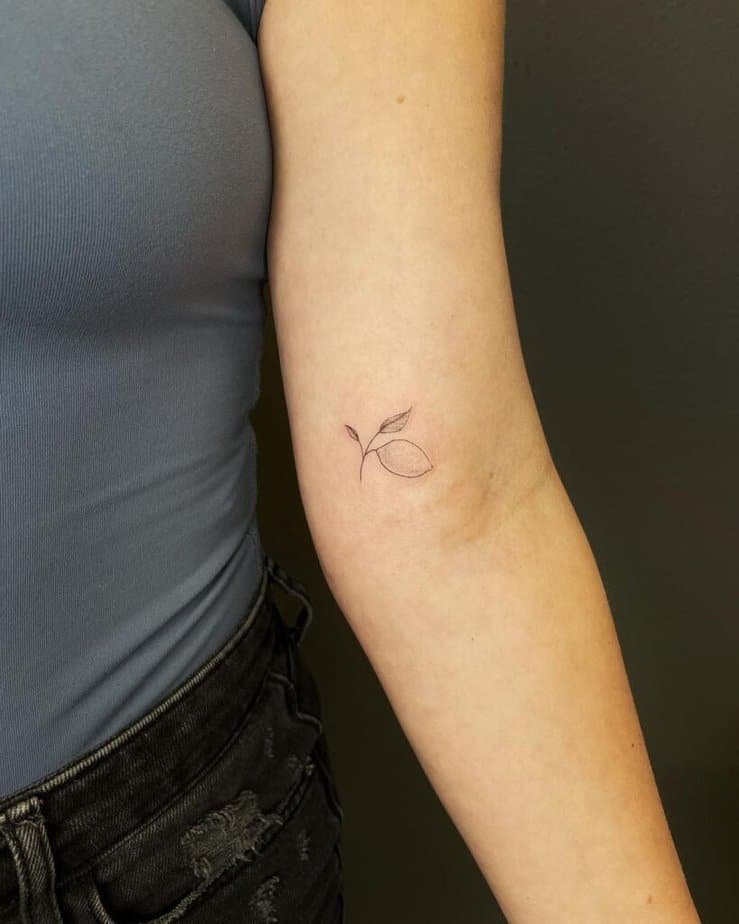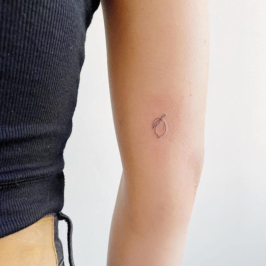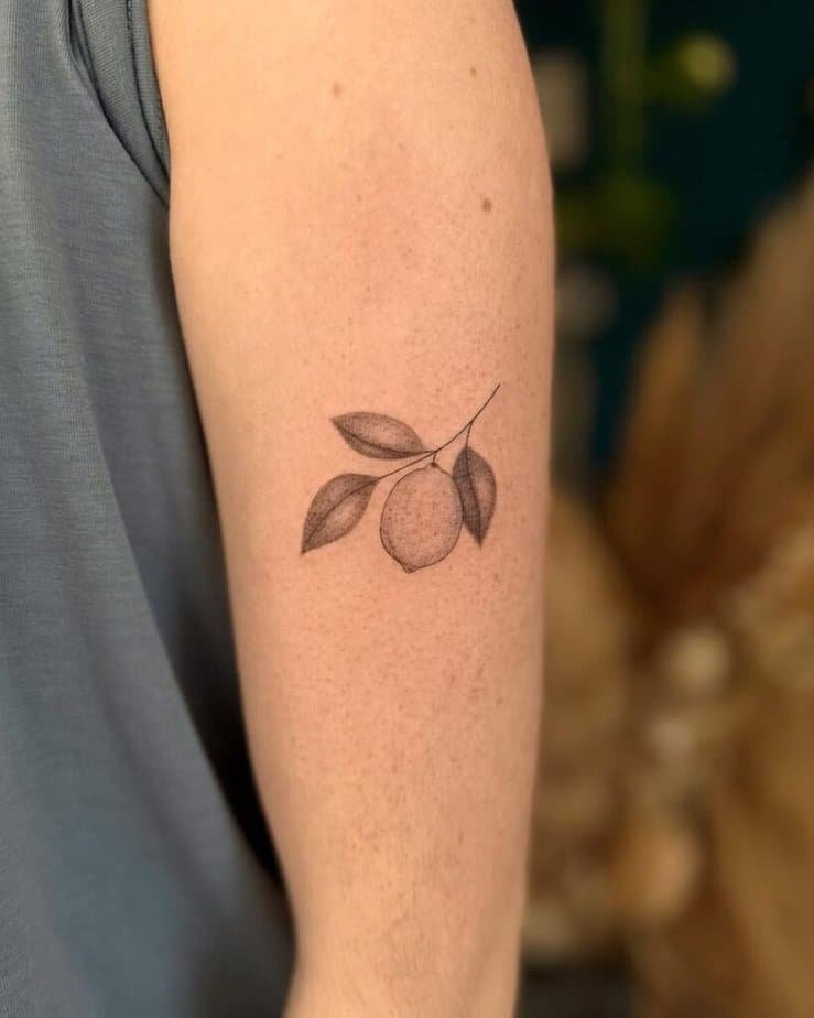 If you like tattoos that start conversations, go abstract. A lemon that’s more shape than fruit reads contemporary and clever — people will ask, and you’ll get to tell them your story.