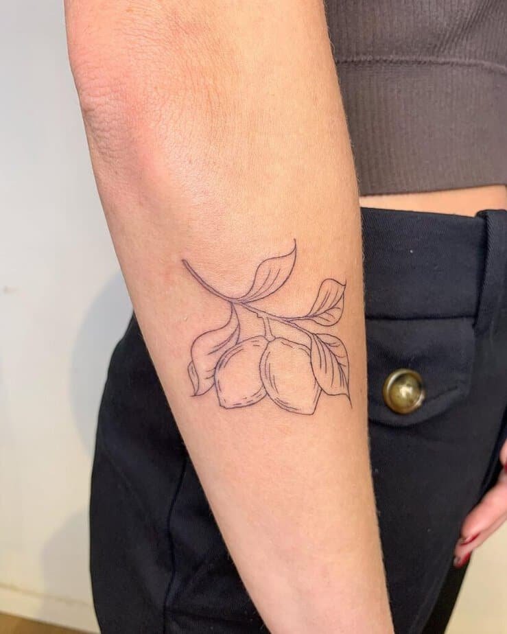 Forearms are built for showing off your ink, and a lemon done in fine-line or line-art looks sleek there. It’s also a lovely spot for a sticker sleeve if you’re building a collection.