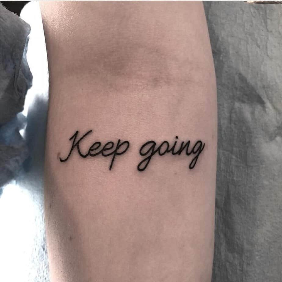 When no one else is around to tell you what you need, let your ink be that voice. “Keep going” sounds small, but for someone mid-battle, it’s everything.