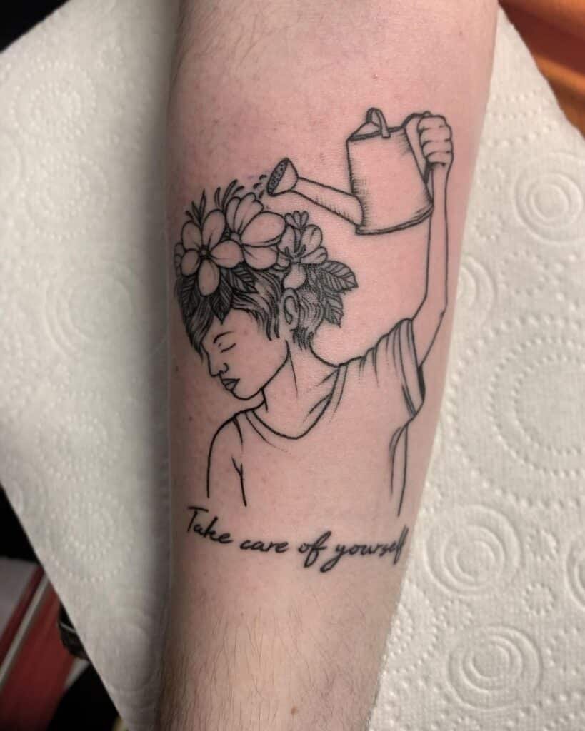 We tend to be gentle with fragile things around us but forget to be gentle with ourselves. This tattoo is the kind, spoonful-of-sugar reminder to treat your mind as the delicate, precious thing it is.
