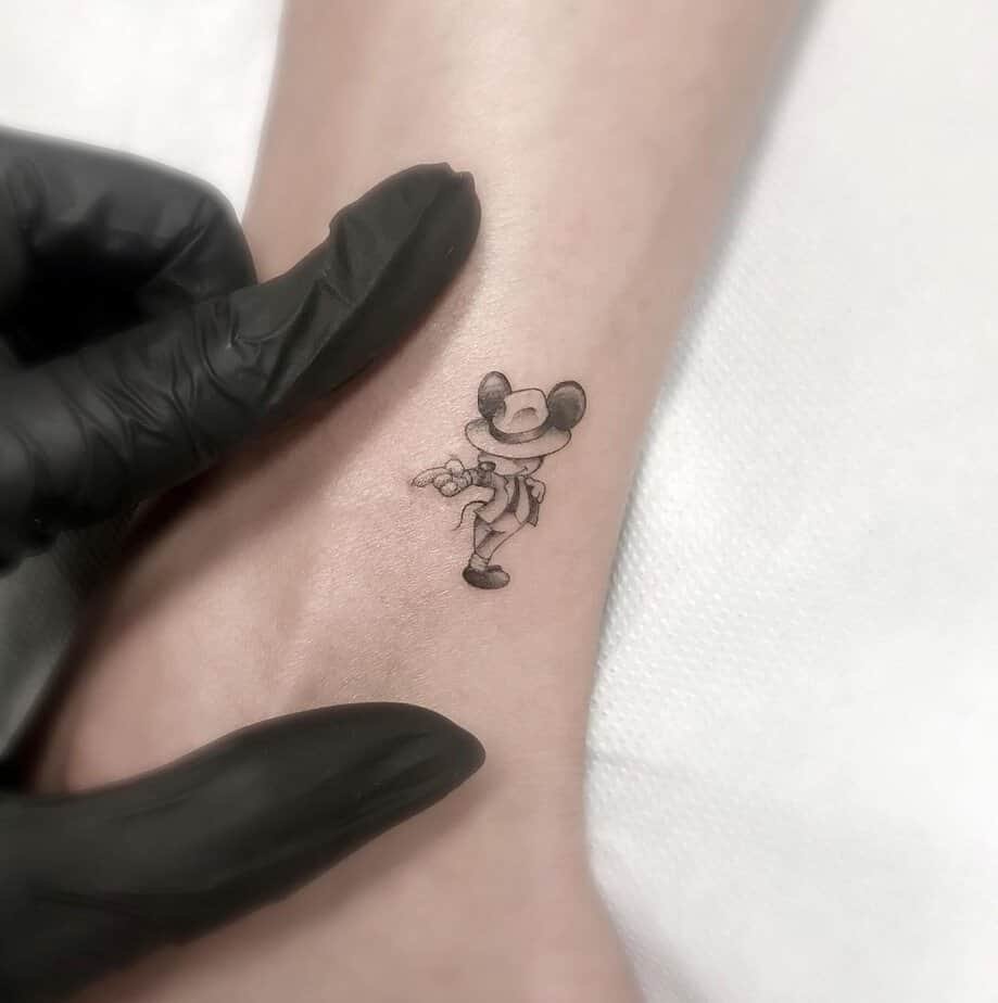Who doesn’t smile at a mashed-up pop-culture icon? Mickey dressed as MJ, glove and tilted fedora included, is playful and sweet. It’s whimsical, nostalgic, and perfect for a small wrist or ankle piece that brings a grin every time you catch it.