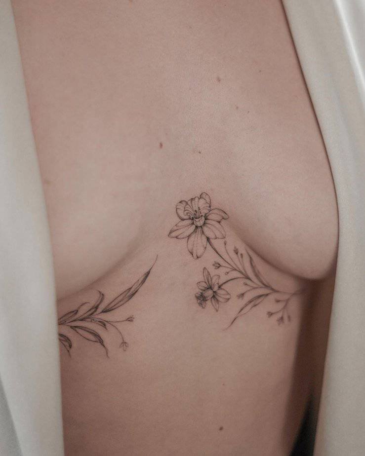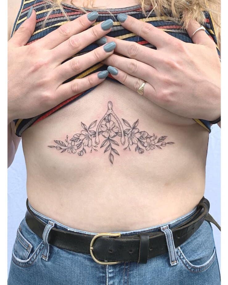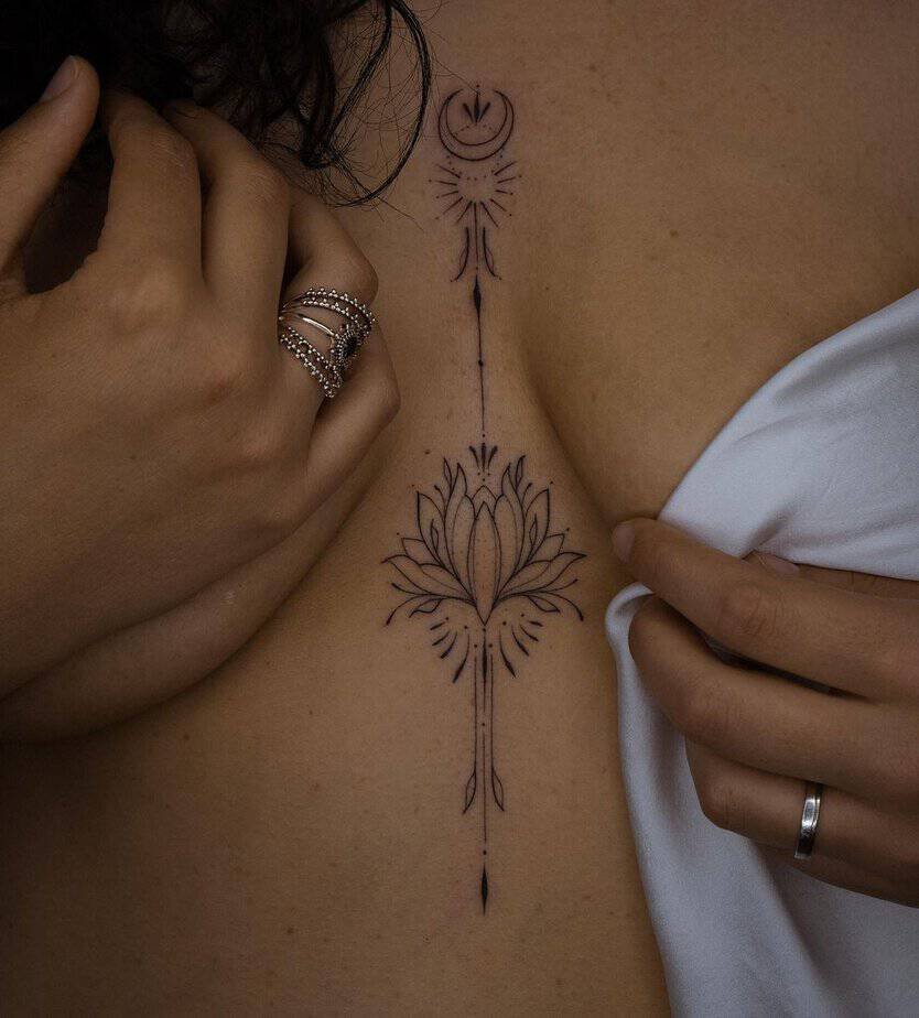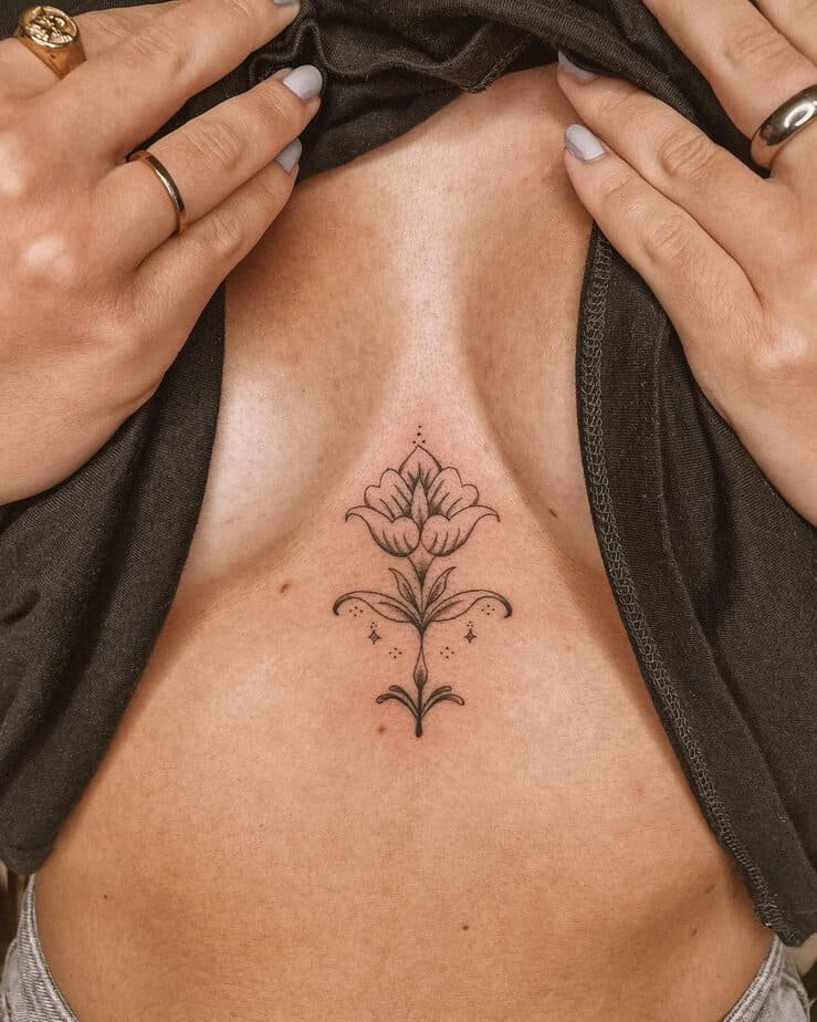 Floral designs are a classic for the sternum because they curve naturally around the body. Soft lines, leaves, and petals follow your shape in a way that feels feminine and timeless — and yes, also very wearable.