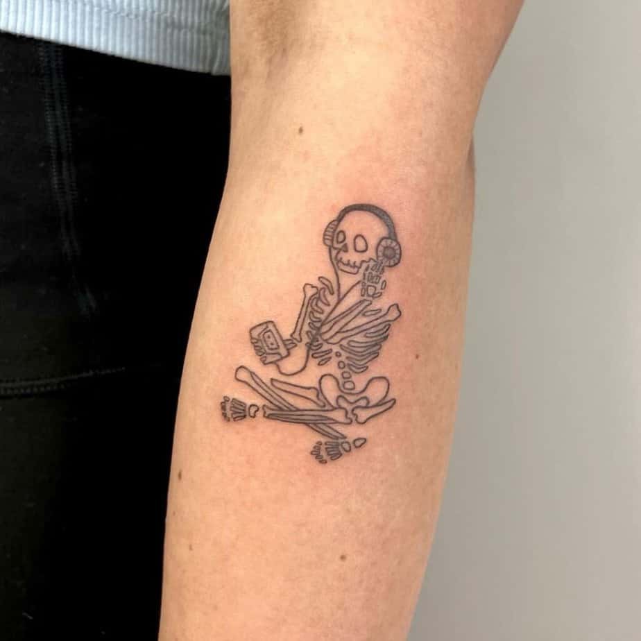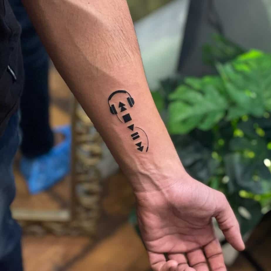 Sometimes the most impactful tattoos are the simplest: a pair of headphones, a play button, a pause symbol. Put them inside your arm and every time you peek you’ll be reminded of the tracks that got you through long nights and louder days.