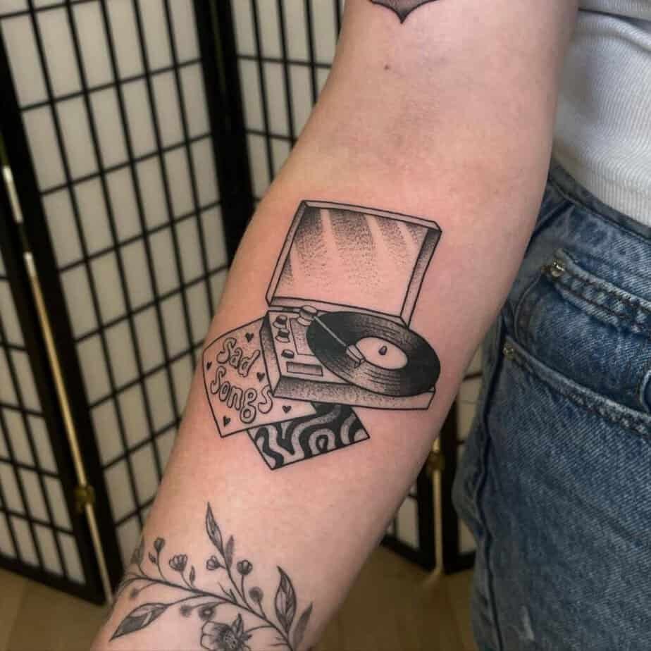 Gramophone on the forearm — vintage romance
