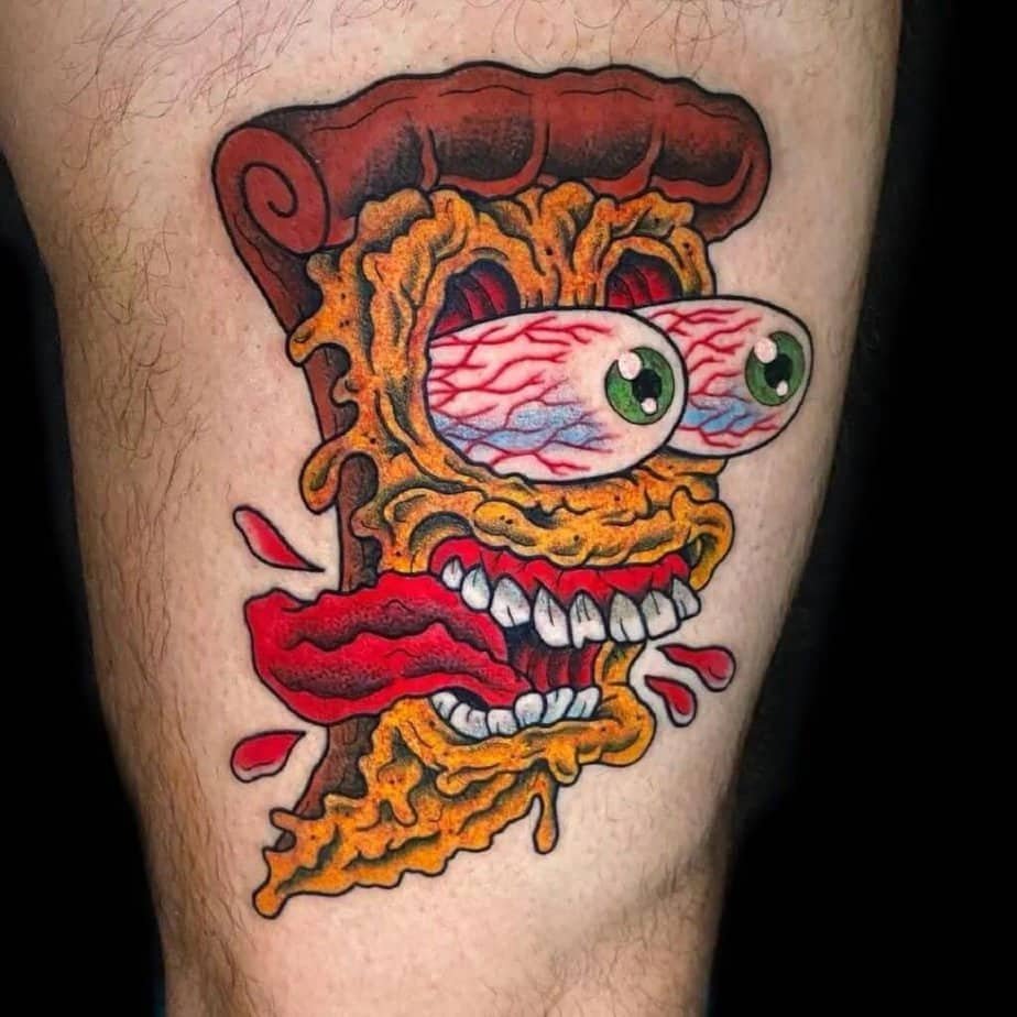 This pizza is delightfully extra — cheesy, bold, and absolutely not subtle. It's for the brave (or the hungry), and it's one of those tattoos that'll get everyone talking.
