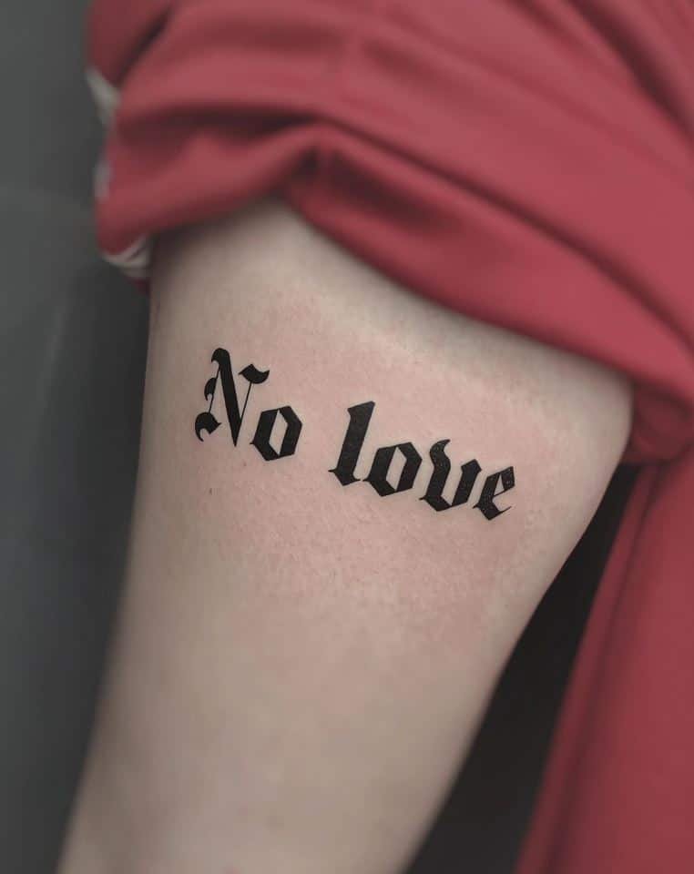 Anyway, whether you want a tiny whisper behind your ear or a loud statement on your arm, a “no love” tattoo can wear a lot of different moods. It’s personal, flexible, and you’re allowed to make it mean whatever you need it to mean. If you end up getting one, send me a photo — I’m nosy in the best way and I want to see how you make it yours.