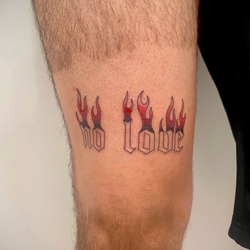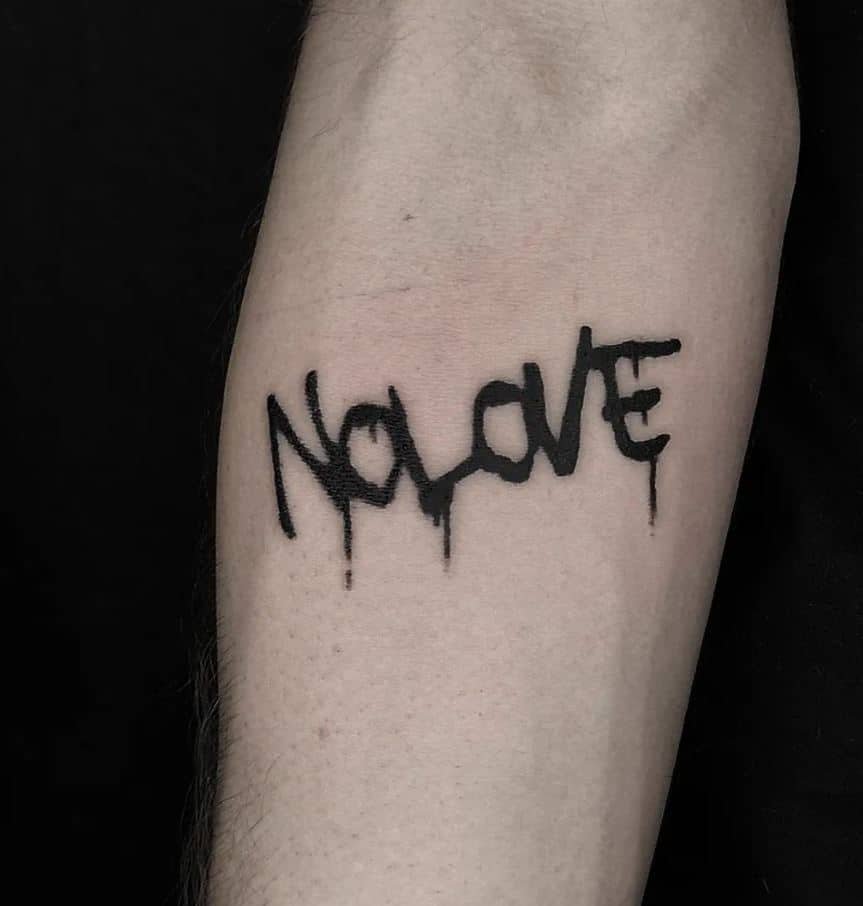 If you want people to notice it, the arm is the move. You can pair the words with a classic rose for contrast — black and gray lettering next to a detailed flower hits hard and kind of steals the show. If you’re into street vibes, a graffiti-style “no love” on the forearm or bicep gives off major attitude. Or keep it tiny and clean with a simple font if you prefer things low-key but pointed.