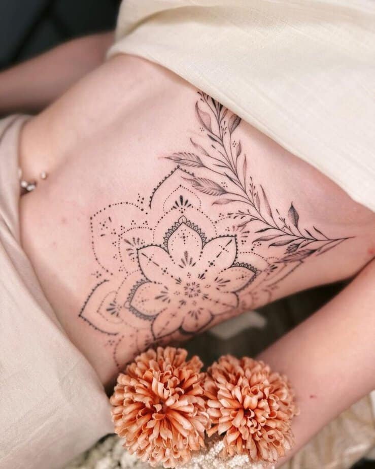 Ribcage tattoos are personal and a little private, which makes them extra special. Ornaments there can be symbolic or just wildly beautiful — either way, they hug the body in a way that feels very intentional.