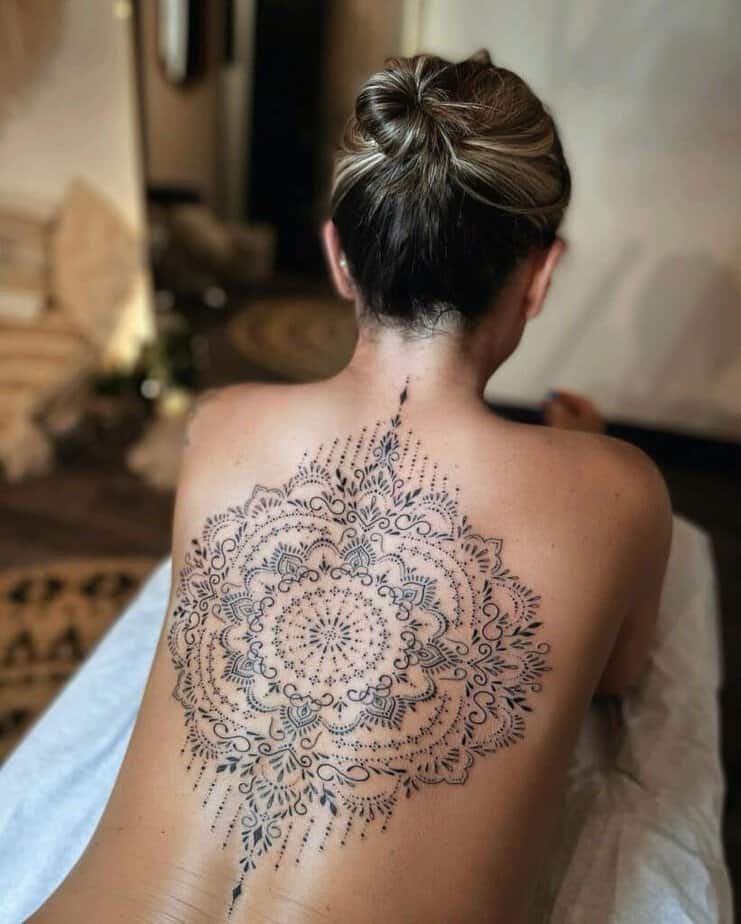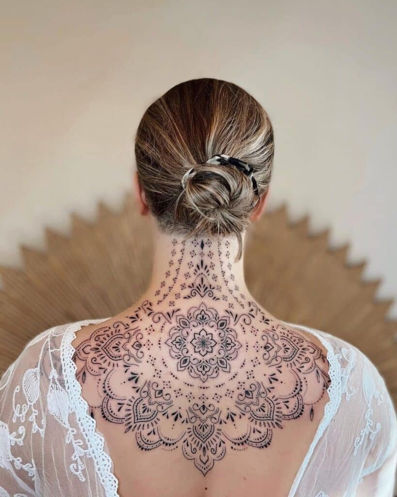 If you’ve got the patience and the love for detail, full-back ornamental tattoos are dreamy. They give your artist space to build something epic — think hours of collaboration and a piece that grows with you.