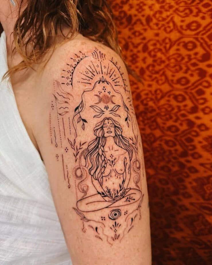 Shoulder tattoos offer a great canvas for combining elements — sun and moon pieces are popular here, symbolizing opposites like life and death or light and dark. Little additions can totally shift the vibe, so think about what story you want your ornaments to tell.